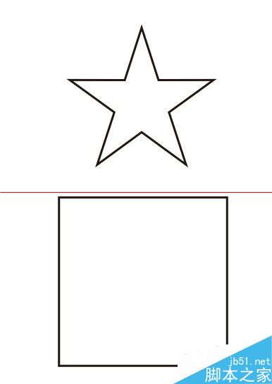 本文以正方形和星形为例,其他形状也是一样的做法。画出一个正方形和五角星。