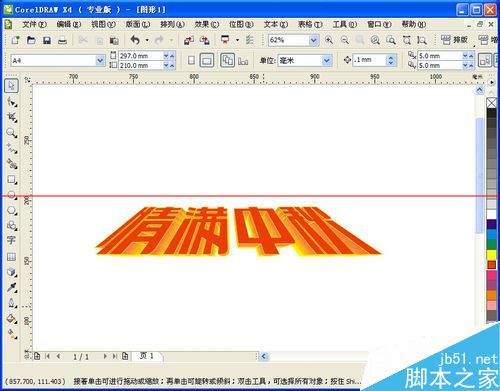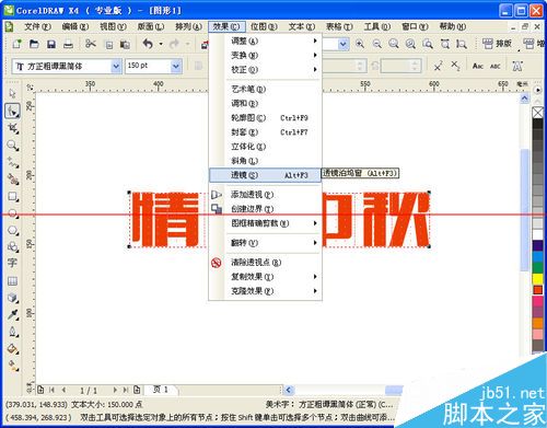 2、选择“文本工具( F8 )”,在工作区域输入需要设计的字体“情满中秋”,然后设置文字的字体、大小以及颜色等。如图,
