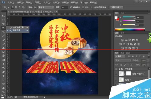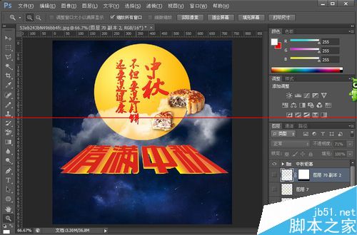 中秋将至,每逢佳节倍思亲。原本制作的是一张中秋节的广告,由于原图有涉及到广告成分,所以做了删减。看图上的文字,明显缺少客户所想表达的产品图片的。这里仅分享一下“情满中秋”立体字的制作过程和使用吧。