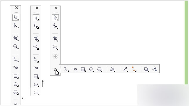 工具箱、属性栏、泊坞窗和调色板添加溢出按钮,便于平板电脑和移动设备用户查看是否存在工作区中放不下的其它控件。