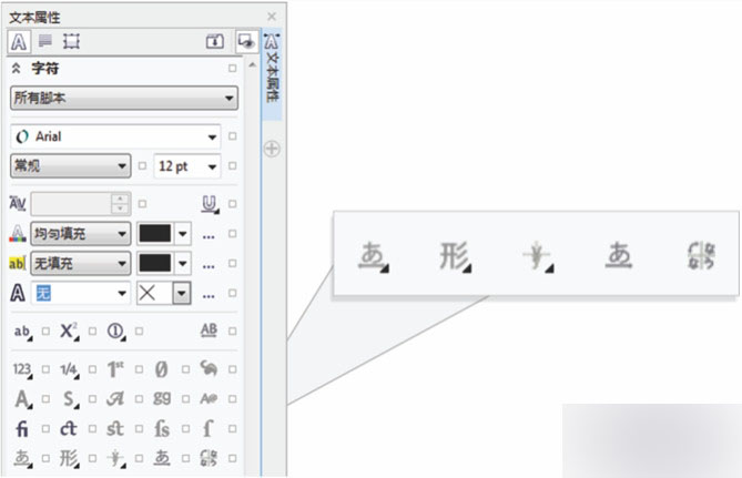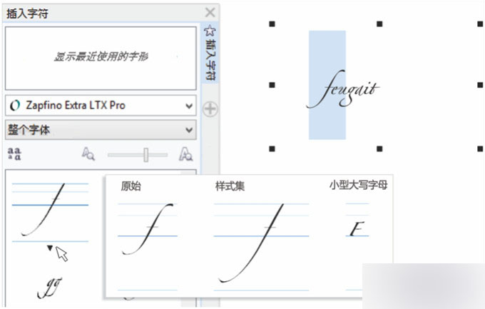 重新设计"插入字符"泊坞窗可显示与所选字体关联的所有字符、符号和字形,在文档中查找和插入这些项目更容易。