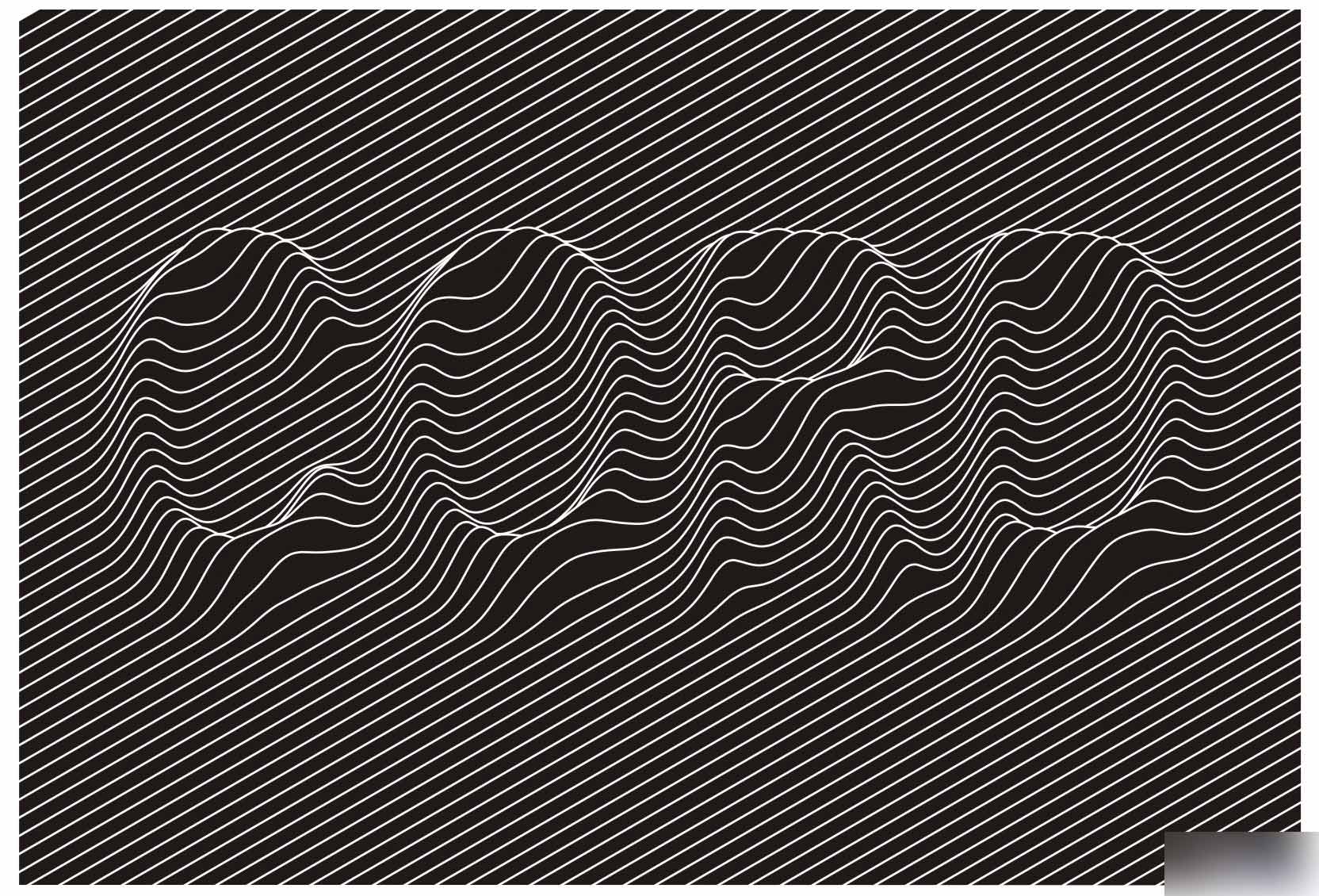 浮凸量是按画面像素的灰度值大小使曲线对应部位向正上方凸起的最大值。这个数值用页面宽度的倍数来度量,默认值是0.05,即页面宽度的0.05倍。浮凸量表达的是最大值,即纯黑色的凸起量,纯白色保持不变。默认的凸起方向是向上,如果想得到向下凹陷的效果,可以把该参数设为负值,如下图所示。