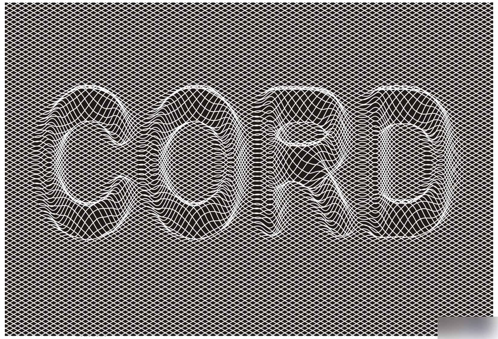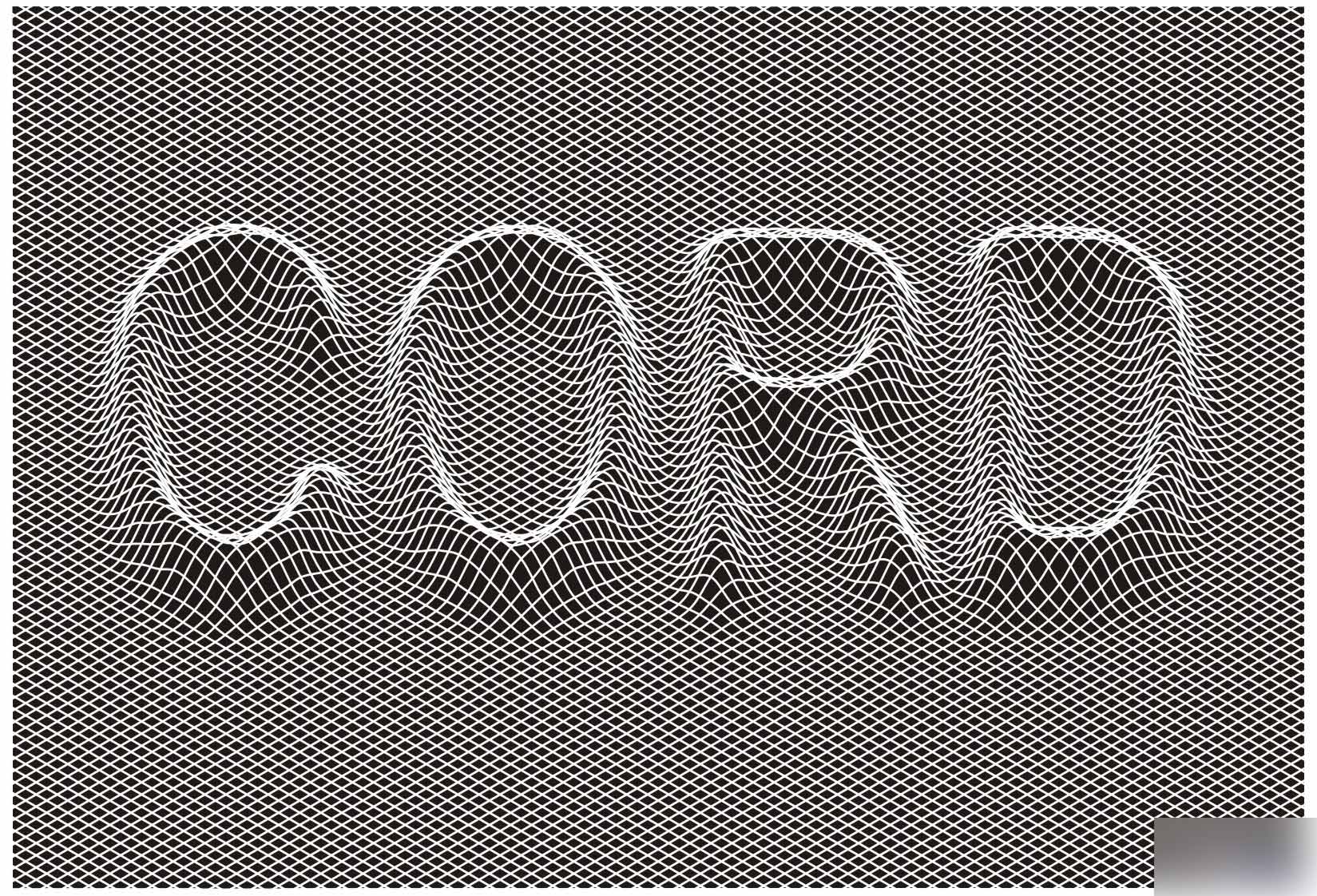 下图和上图的做法相同,只是两幅图一凸一凹,试图制作字体的笼形空间效果。