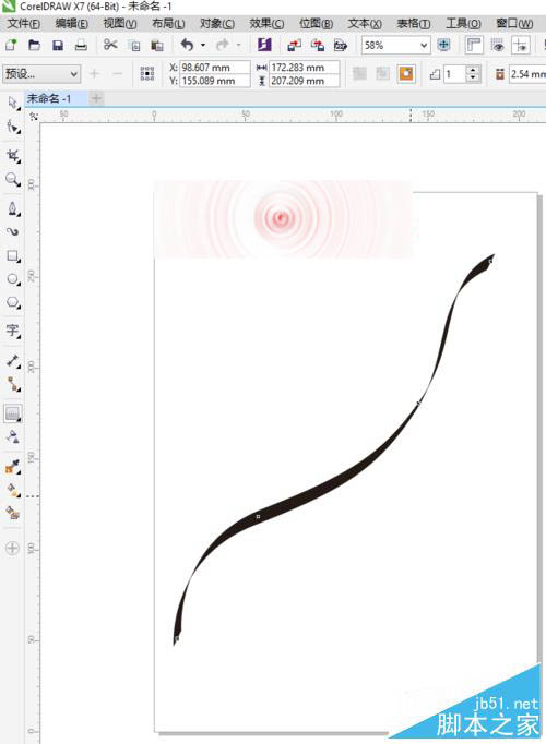 2、选择工具箱中的选择工具,选中绘制出来的曲线,讲其调粗一点,我们将轮廓宽度设置为10mm。