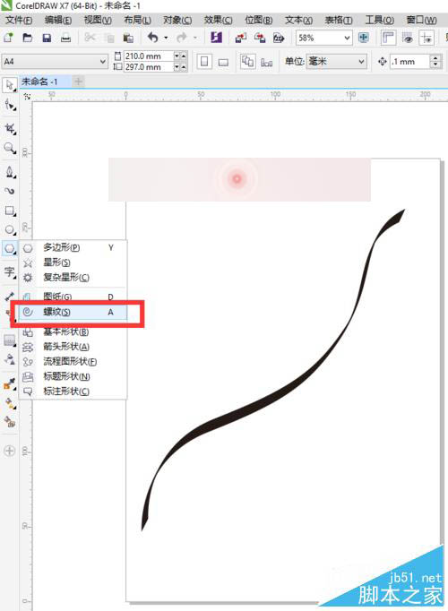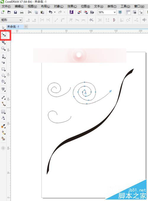 4、选择工具箱中的螺纹工具,在属性栏中设置螺纹圈数,分别设置为1 .2 .3 ,画出3条螺纹出来。我们可以选择工具箱中的形状工具,点击节点将其调整一下,太规则的话,看起来不是很自然。