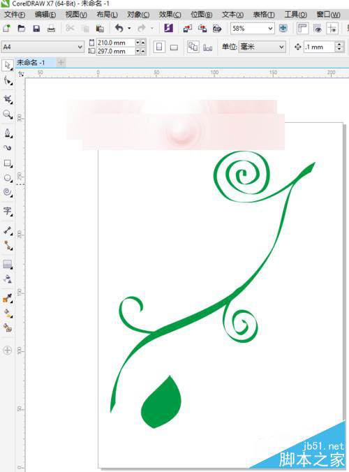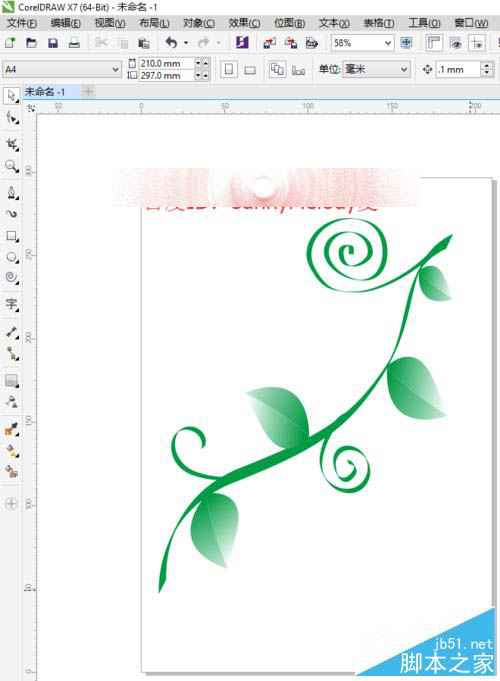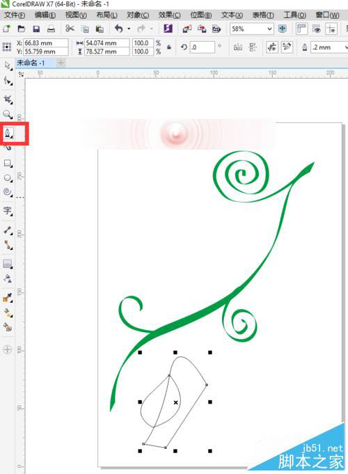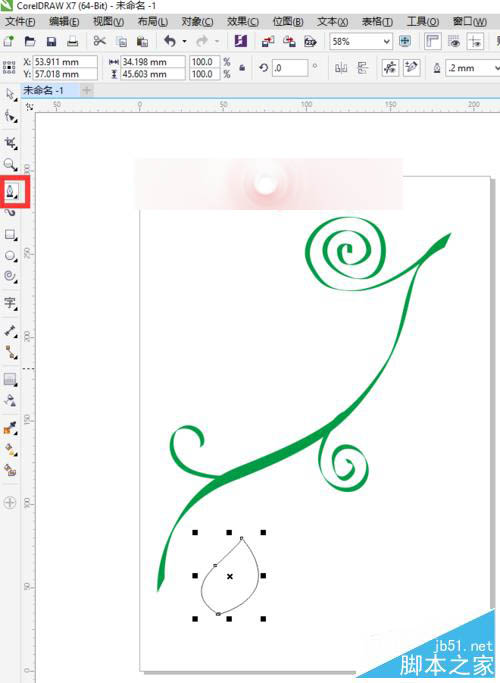 12、选中整个叶子,按快捷键Ctrl+G进行群组命令。编组后,选择工具箱中的选择工具将其移到合适的位置。移动后,先左键选择拖动,并且左键不放,再单击右键可以复制一片相同的叶子,我们按照类似的方法多复制几片叶子移到合适的位置。