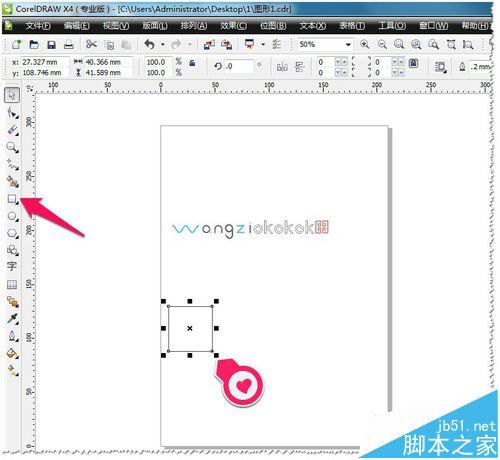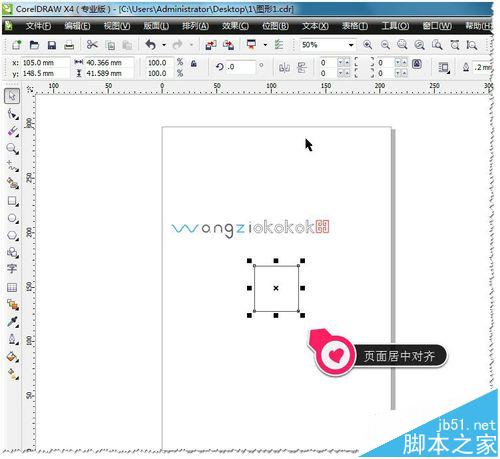 2、比如:你要把这个矩形在,在该软件的页面中居中怎么办呢?其实很简单选中矩形(对象),在键盘中按P即可。P为页面中居中。如图