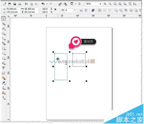 12、如果想让多个对象要纵向居中与顶边同时对齐怎么办?这个其它也很简单,在键盘中按C再按T即可。如果要两项同时对齐,按下两项的相应快捷字母.(当然两项不能是矛盾的两项)如图