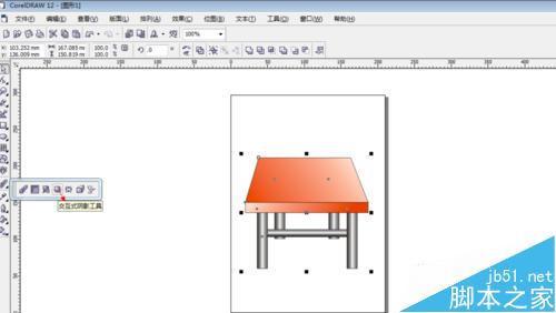 8、为了达到更好的效果,我们需要给桌子加上一个阴影,首先,选择所有的图形进行组合,然后点击”交互式工具“中的”交互式阴影“。