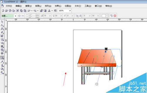 9、从下往上拉,出现桌子的轮廓,选择拖动一个角度,如下图。