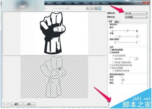 3、进入临摹的对话框——选择中心线,如果对默认的效果,满意就点确定。如图