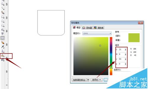 3、设置好颜色之后,我们就可以填充了,这样我们就会看到边角有一个黑色的边框,我们点击右边的颜色区域,效果我们可以见下图所示;