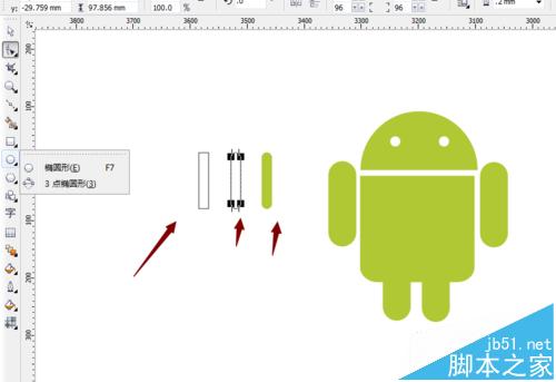 4、然后,我们就可以绘制安卓小人的手臂了,同样用矩形工具,画一个长方形的矩形,然后用形状工具拉一下,就可以了,然后我们在填充颜色即可;效果我们见下图所示;