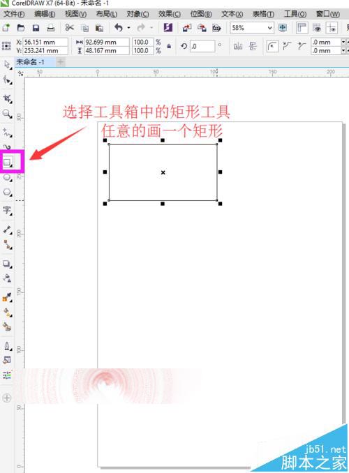 2、选择工具箱中的矩形工具,任意的绘制一个矩形,如下图所示。