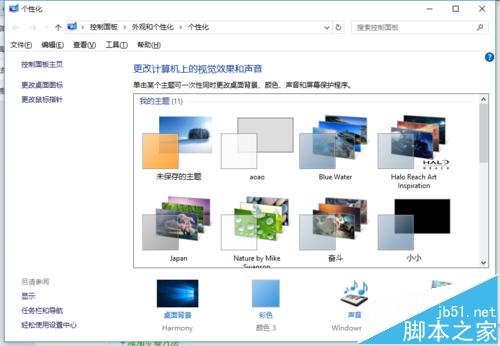 2、右键桌面空白处,选择"个性化",进入个性化设置界面.在左边的工具栏中选中"主题"