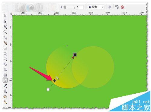 9、把鼠标放在控制线条上,鼠标变为十字标志时还可以直接移到整个控制条——来改变渐变位置及效果。如图