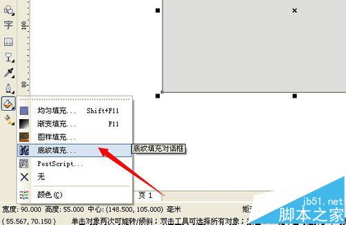 1、打开软件绘制你所需要大小的矩形。填充浅灰色。选择填充工具,底纹填充。