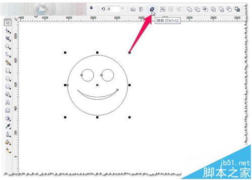 5、当然你也可以自己画一个更漂亮的微笑哦。这里使用框选全选图形——进行进行合并——CTRL+L结合。如图