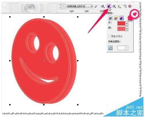 8、把笑脸的图形填充好颜色,使用立体化工具——拉出立体的形状并设置好各个参数——达到满意效果为至。如图