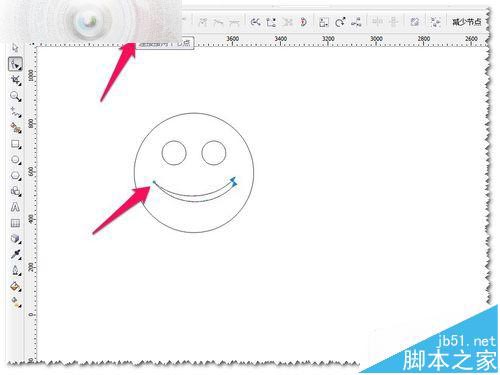 2、这个笑脸比较单调一些——想做细节的调整!这里想把微笑改一下,怎么弄呢?先转曲——选中图形——CTRL+Q转曲,然后打散——CTRL+K打散。如图