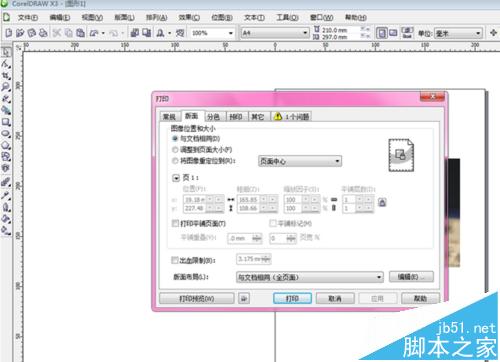 2、点击【版面】,可以设置待打印的图像位置、尺寸大小和页面的出血程度,当然也可以设置有关打印平铺页面的各种选项。