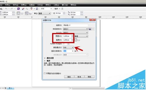 1、首先,打开CorelDraw软件,新建一个1000*1000像素的RGB白布背景。