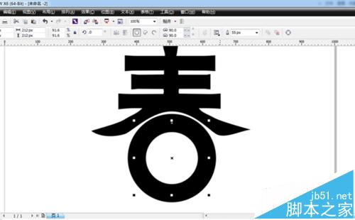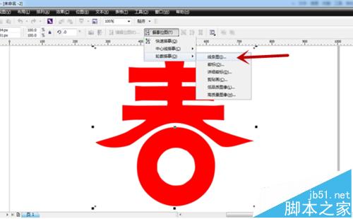 3、将文字“春”调整到合适大小,按键盘上“Ctrl+Q”键将其转换为曲线图模式进行编辑。