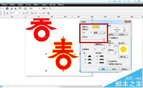 8、选中生成的线条图,按“F12”快捷键调出“轮廓笔”工具,调整图形的边缘颜色和粗细程度。