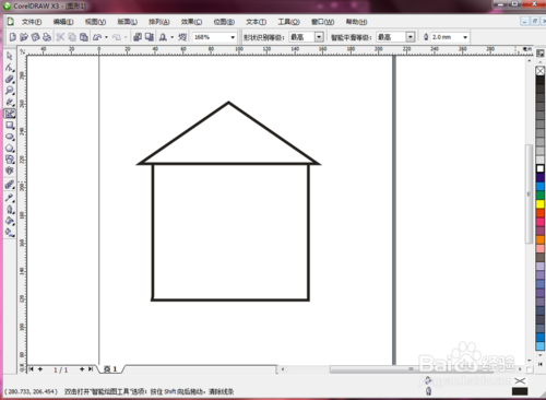 CorelDRAW X3中的【智能绘图工具】是可以将用手绘制的手稿痕迹智能性的转换成相似的基本图形和曲线的,即可做到快速的作出各种图形。下面是小编使用【智能绘图工具】绘制的一个房子的过程。