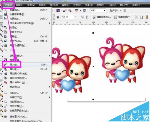 2、接着将这张白色底的,需要抠图的图片直接拖进空白的文档里,或者也可以通过“文件”下的“导入”来将图片导入到空白的文档里。