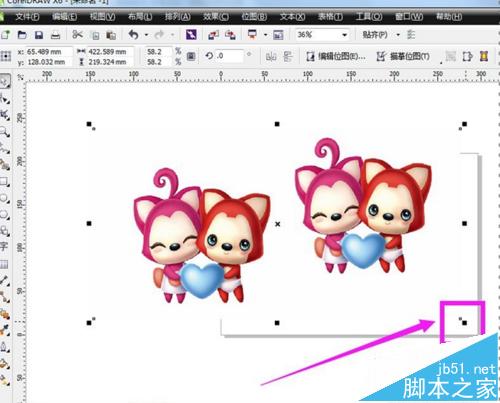 3、若是导入的图片过大导致不方便查看,可用“选择工具”来选中整张图片,然后再按下键盘上的“shift”键,再通过拽住图片右下角往里缩,等比缩小一下图片就可以了。