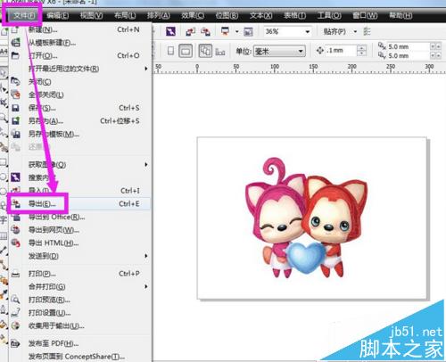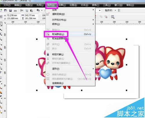 6、得到扣除了白色背景的图片以后点击菜单栏里的”排列“,然后在它的下拉列表里再选择”取消群组“。
