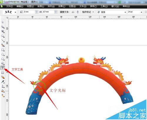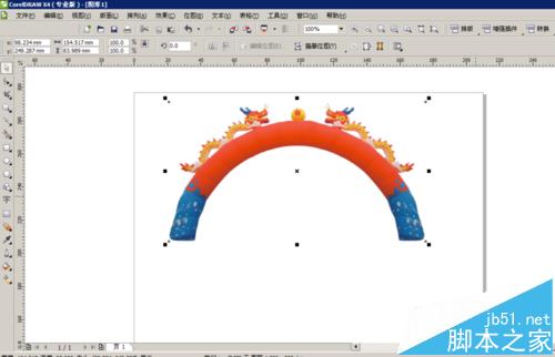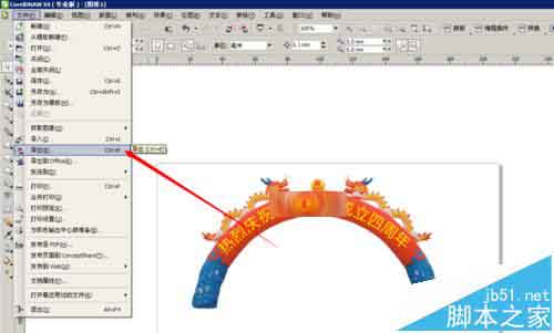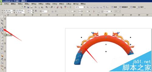 2、把已经准备好的拱门图片在CDR“文件”中 —“导入”,然后拱门就在软件里面打开了,如下图所示。