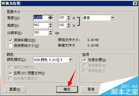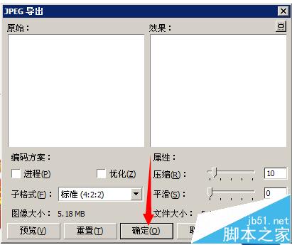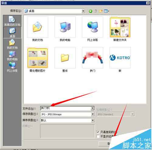 7、进行保存工作了,选好保存位置,在文件中选择 —”导出 “后,会跳出一个转移为位图的窗口,点击 —”确定“后,再在JPG导出窗口中点 —”确定“,就OK了,如下图所示。