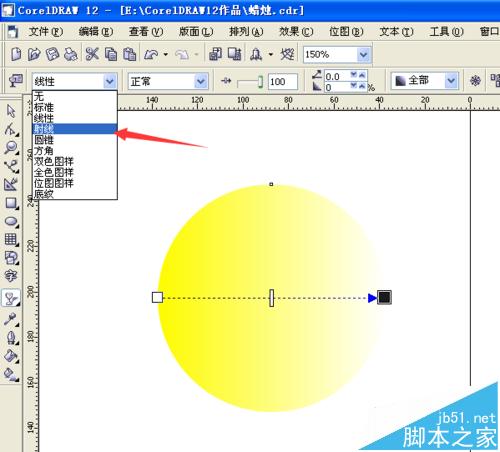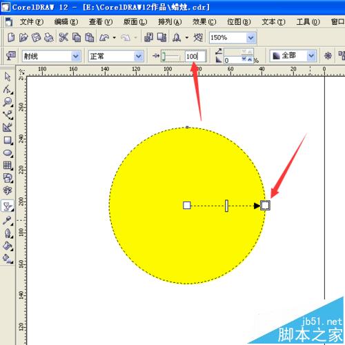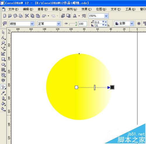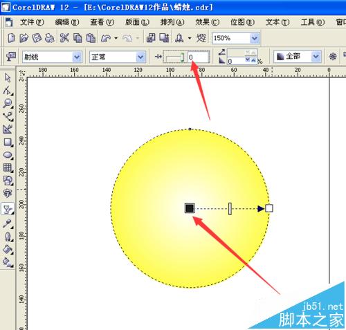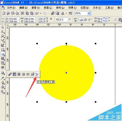 5、选择”交互式透明工具“,从圆心往右拉出一个填充来。