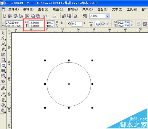 1、在电脑上打开CorelDRAW软件,选择”椭圆工具“,按着Ctrl键画一个正圆,并且设置正圆的直径为14mm。