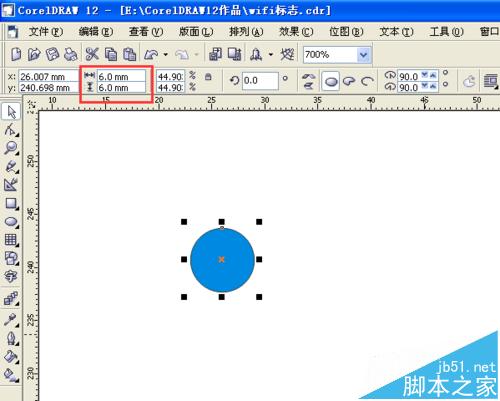 22、选择”椭圆工具“,按着Ctrl键画一个正圆,并且设置正圆的直径为2mm,填充蓝色。