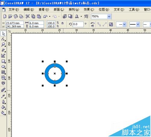 7、用”挑选工具“,把两个圆都选择上,再点击上边属性栏的”后减前“按键,就又可以得到一个空心的圆了。