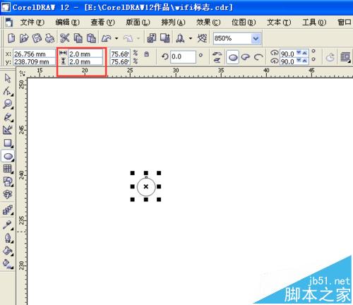 3、点击其中一个圆,再按一次数字键盘的“+”键,在原地多复制出一个圆来,把这个复制出来的圆的直径设置为12mm。