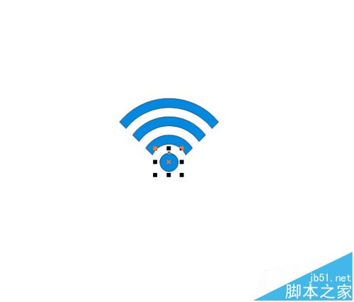 21、移开正方形,点击刚才相交部分,就可以拖出一个wifi标志来了,但这个wifi标志还不够完整。