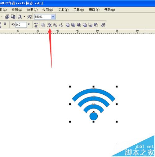 25、最后,选择整个wifi标志,再将鼠标放在软件右边最上面那个交叉上,再右击一下这个交叉,就可以去除wifi标志的边框了。这样,一个完美的WiFi的logo标志就制作完成了。