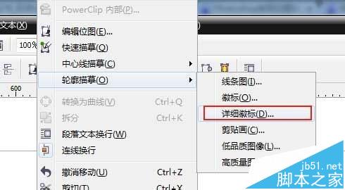 2、在位图上单击右键,选择“轮廓描临”->"详细徽标"