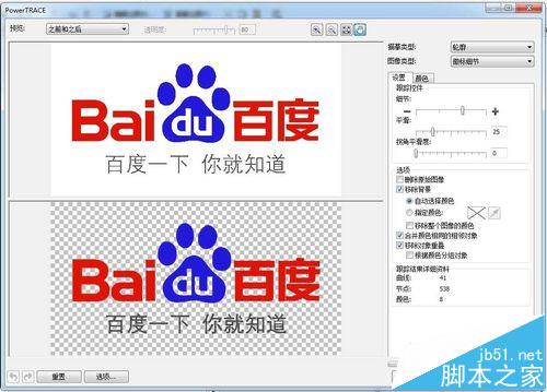 4、系统识别后会有一个对比图预览。如果识别的不够好,可以微调右边的细节等各项选项。当然原始图片的质量直接影响图片识别的好坏,所以如果原始图足够清晰,识别出来的效果也就相应较好。做好各项设置后,点击确定就OK了!