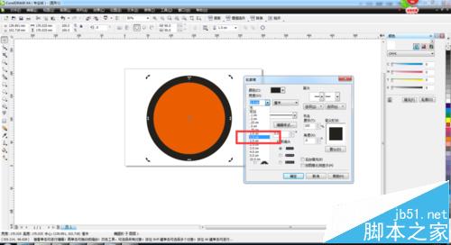 3、这一步是把圆的描边变粗一点 变的明显点 双击右下角的黑色方框,出来轮廓笔对话框
