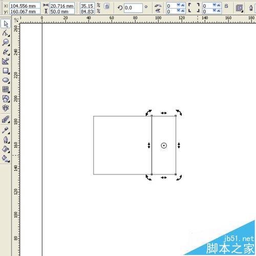 3、将右边的正方形,用挑选工具,从右边往左边缩小一些。