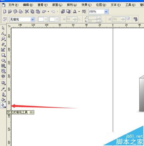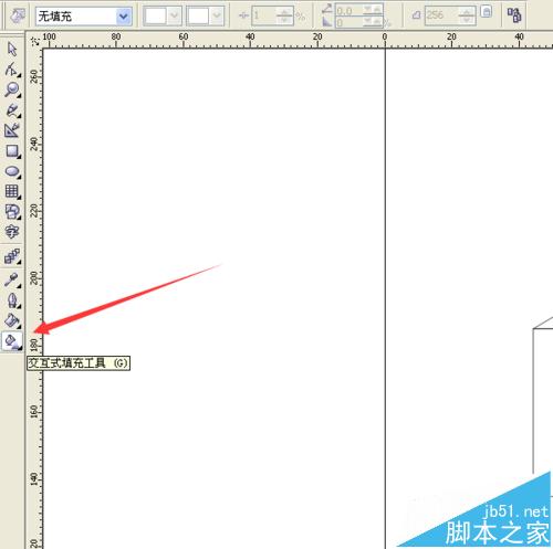 22、选择“交互式充填工具”,在刚长画出的长方形上,从右下角到左上角拉出线性填充来。