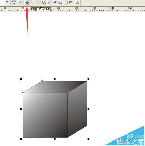 14、将整个正方体都选择上,再点击“群组”,对所选对像进行群组。