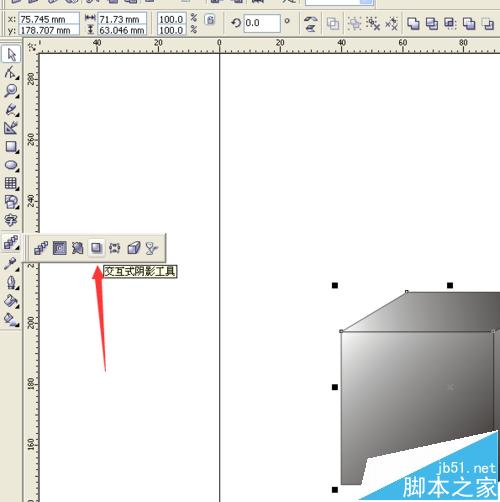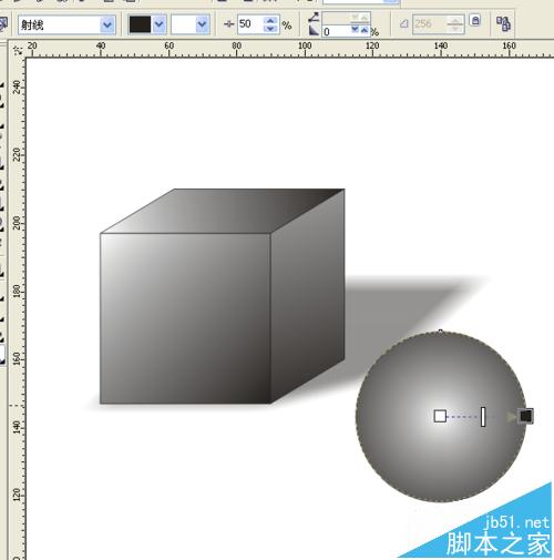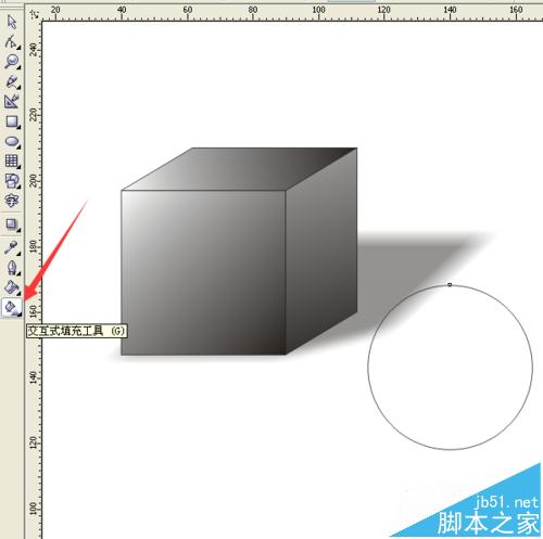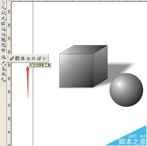 15、选择“交互式阴影工具”,从正方体的底向右上角拉出一个阴影来。