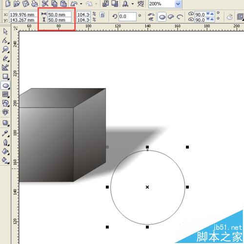 16、选择”椭圆工具“,按着Ctrl键画一个正圆,并且设置正圆的直径为50mm。