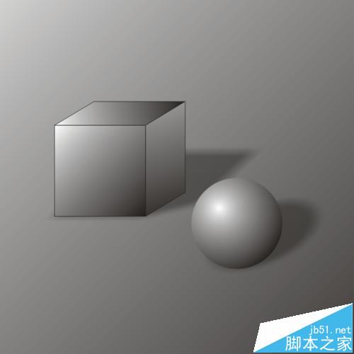 23、这样,两个充满立体效果的几何图形,正方体和球体就画好了。